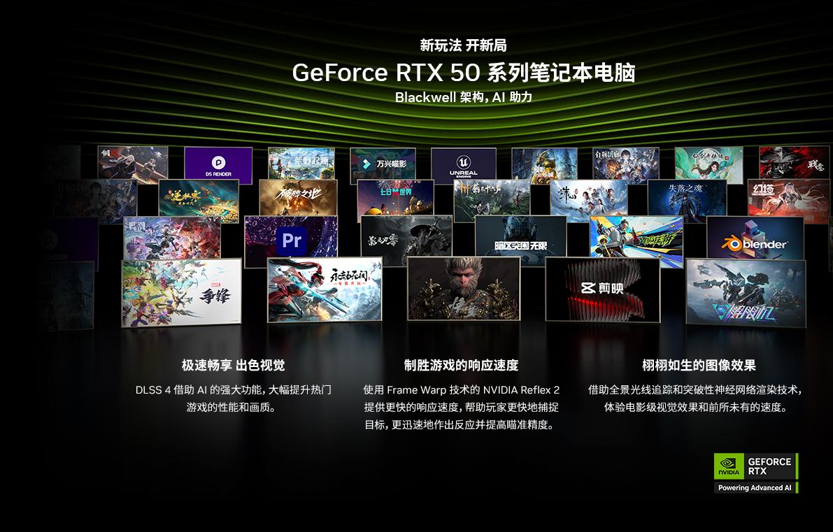 2025年的笔记本市场对用户可太友好了,原本的国补活动就已经非常吸引人,当下又迎来了618大促以及一系列新品上市,让笔记本电脑市场迎来了一波极具冲击力的“真香”潮。其中搭载NVIDIA® GeForce RTX™ 50系列笔记本电脑GPU、的游戏本关注度最高,凭借着超强的性能表现,为玩家带来了新玩法 开新局。GeForce RTX™ 50 系列 GPU 搭载 NVIDIA Blackwell 架构,为游戏玩家和创作者带来全新玩法。