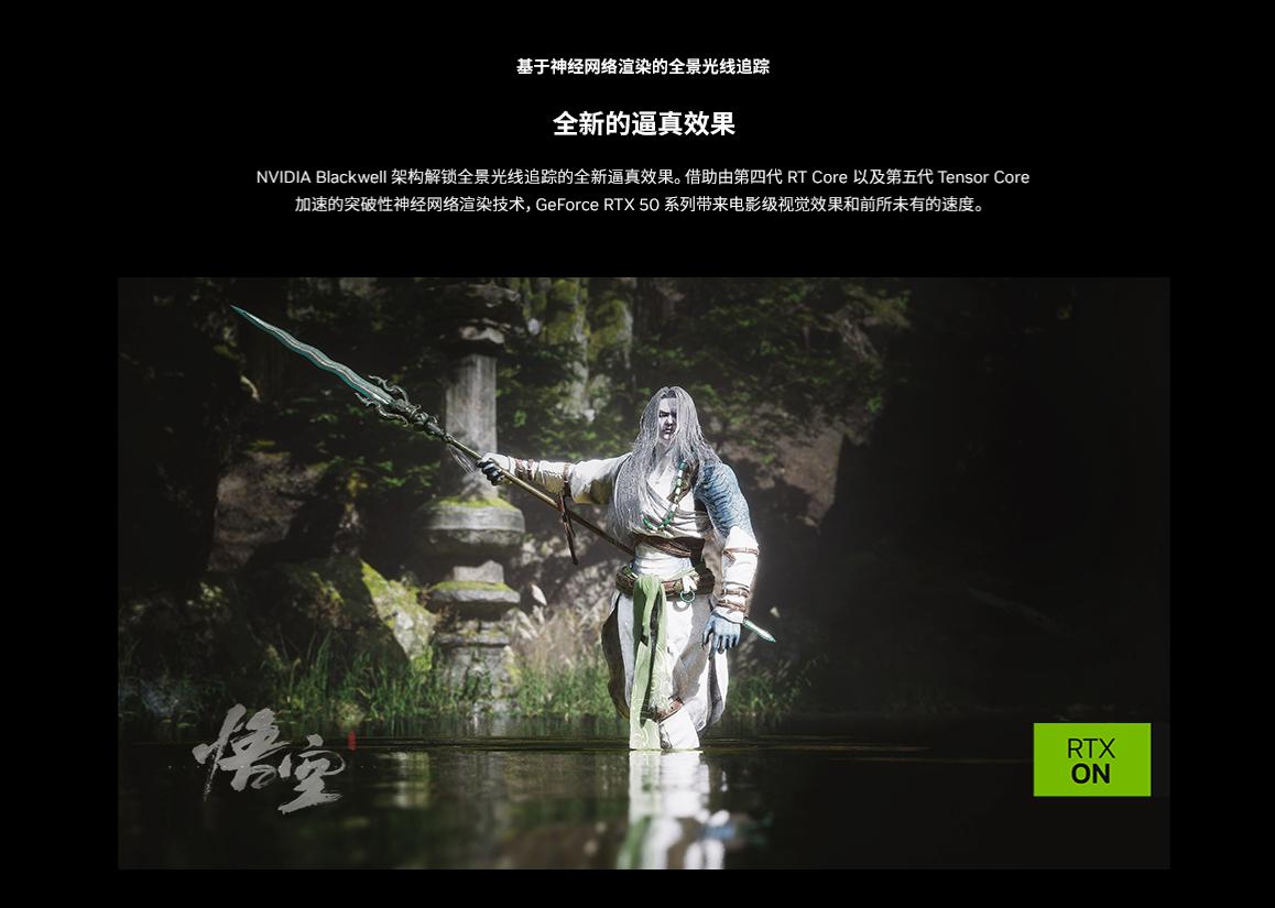 不过更值得游戏玩家关注的是DLSS 的革命性突破,DLSS 是一套创新性的神经网络渲染技术,借助 AI 提升帧率、降低延迟并增强画质。由 GeForce RTX 50 系列 GPU 和第五代 Tensor Core 提供支持,DLSS 4 带来全新的多帧生成技术和增强的光线重建及超分辨率。