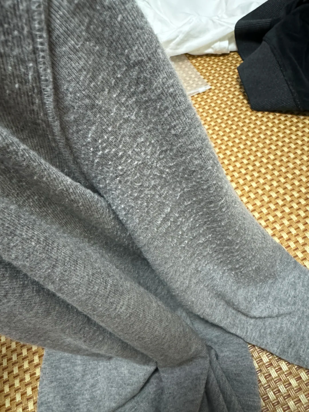 然而,衣服掉毛十分严重,因为洗了也不能退回去了。硬着头皮穿,里面的打底衫,还有裤子上面全是毛。