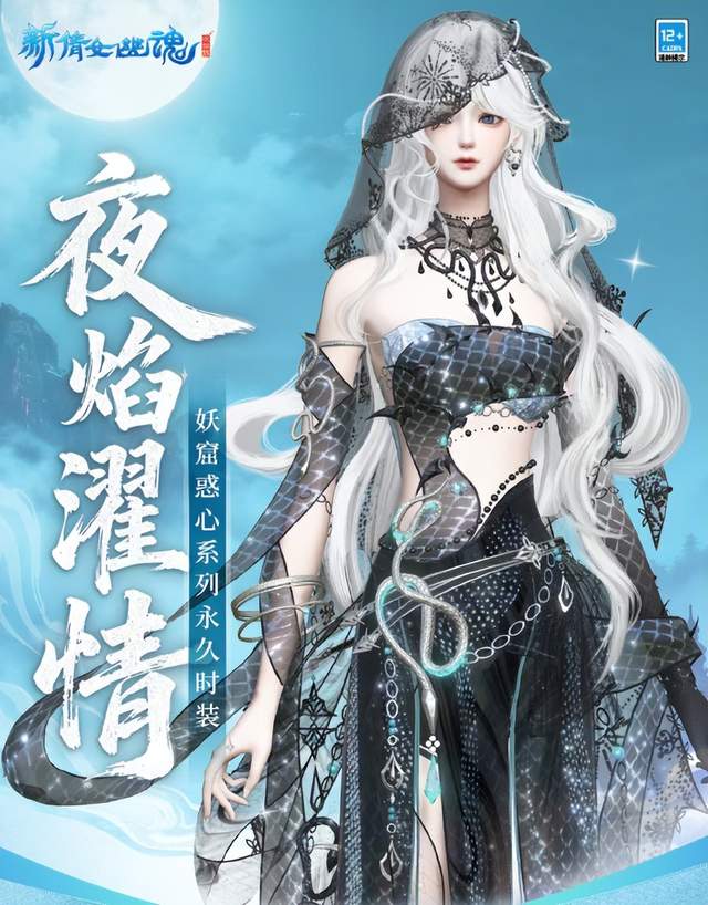 作为此次联动妖窟惑心系列永久时装,【夜焰濯情】可以说是相当惊艳。以蛇精的蛇鳞为主体元素进行设计,修身的风格搭配飘逸的衣摆让时装整体更具观赏性。黑色的头纱搭配精致白发能够完美凸显出女性角色的绝美容颜。时装上半身采用的蛇鳞设计使其宛如游走于身上的银蛇一般灵动且自然。腰间点缀的银蛇使得时装更具设计感,在呈现出绝美观感的同时也能让更多玩家体验到蛇精的别样魅力。