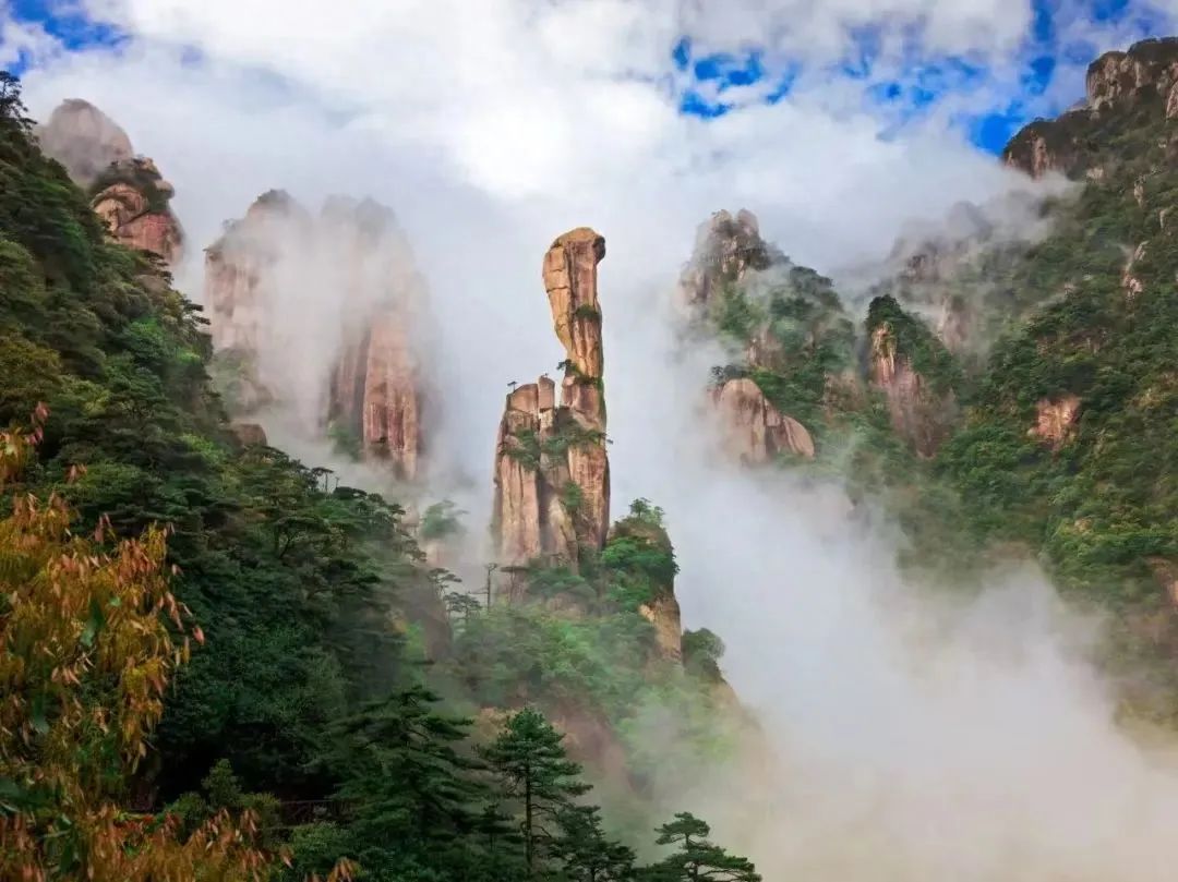 其独特的花岗岩石柱和山峰,栩栩如生的花岗岩造型石与丰富的生态植被、远近变化的气候奇观相结合,创造了世界上独一无二的景观,呈现了引人入胜的自然美。