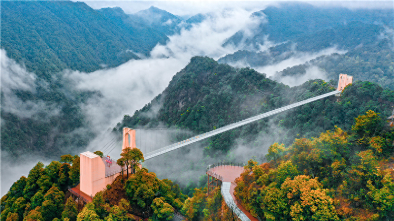 这里有落差119米的云谷飞瀑,有蜿蜒峭壁之上的青云栈道,有光怪陆离的星月洞,有亚洲落差最大的奔月滑索,有恬静迷人的月亮湖,还有高山观光小火车……