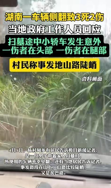 4月5日,一家五口驾车前往半山腰扫墓,车辆失控翻下陡坡,致3死2伤。