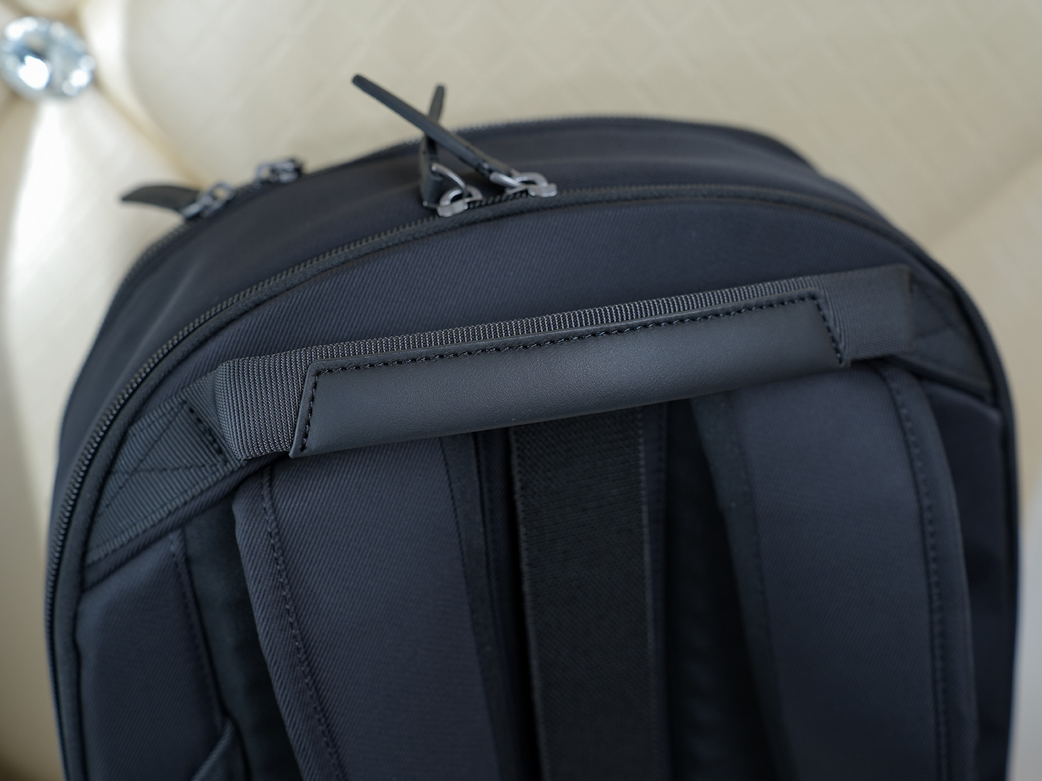 ▲细节方面,胶囊背包顶部提手采用皮质包裹,双层加固缝制,提拉时手感舒适扎实;背带末端也有皮质装饰,背负时更有质感;拉链采用国内最大的拉链品牌SBS的双开拉链,确保了双肩包的耐用性和使用流畅度。