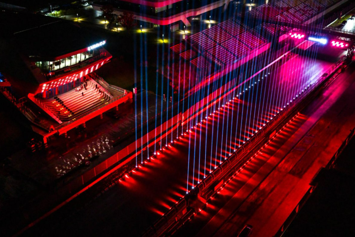 成都领克 MEC 是成都东部新区智造产业升级的重点建设项目,选址于天府国际赛道核心区,紧邻主看台,且拥有直通赛道与城市街道的独特区位优势,在地理和功能上构建起赛道与城市之间的连接纽带,成为串联赛事活动、领克社区与城市日常生活的重要桥梁。该体验中心建筑总面积约 3884 平米,整体高度 24 米,共分为四层,各层功能区的划分充分结合领克品牌定位与用户多样化的体验需求。其设计理念源于领克 “生而全球,开放互联” 的核心价值观,深度融合品牌 “都市对立美学” 的抽象内核与建筑解构主义的未来感,打造出具有强烈科技感、未来感的 “时空飞船” 造型,凭借这一设计,成都领克 MEC 还斩获 2025 年伦敦设计大奖 “概念建筑 - 国际类” 金奖,展现出领克在设计与审美方面的实力。