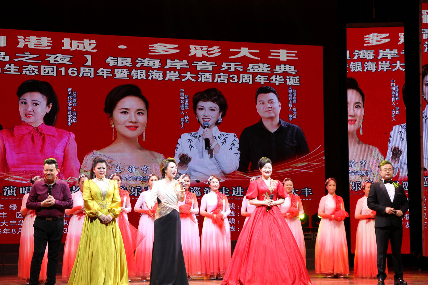 王雅宁在演出后的感言中多次强调“感恩”与“共鸣”。她特别感谢主办方绿岛生态园冯总的邀请、刘导的精心策划,以及主持人孙杰、康艾威的默契配合。同时,她致敬助演嘉宾——国防之旅文工团女高音歌唱家冀淑华、男高音王慧军,以及大丰南山舞蹈三队的伴舞团队,称他们的参与“让舞台更加完整”。