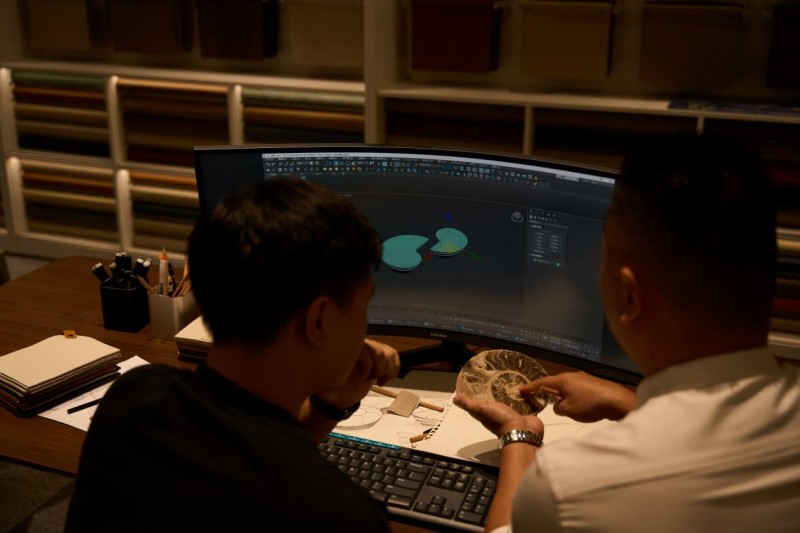 沈才前的办公室宛如全球高端材料的“实验室”,每一件打样产品都需经过严苛筛选。“我们不做市场的追随者”,这句话不仅是他的产品准则,更是品牌的精神内核。从首款原创茶桌风靡全网,到卡玛格功能沙发夺得天猫万元价位销冠,魅力大师始终以“差异化”构筑护城河。