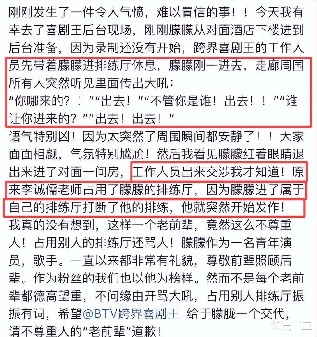 李成儒语气激烈、态度强硬,导致于朦胧“红着眼睛退出房间”。工作人员事后解释,该排练厅本属于于朦胧,李成儒占用在先却未沟通。