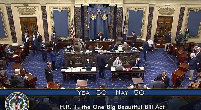“大而美”法案的立法之路堪称步步惊心。7月1日参议院表决中,副总统万斯在50:50僵局时投下核心一票,以51:50的微弱优势强行通关。民主党人发动教科书式的拖延战术,先是要求逐字宣读940页法案全文,耗时超10小时进,再抛出无限量修正案狙击程序。这些使劲将最后表决拖到独立日假期前夕。