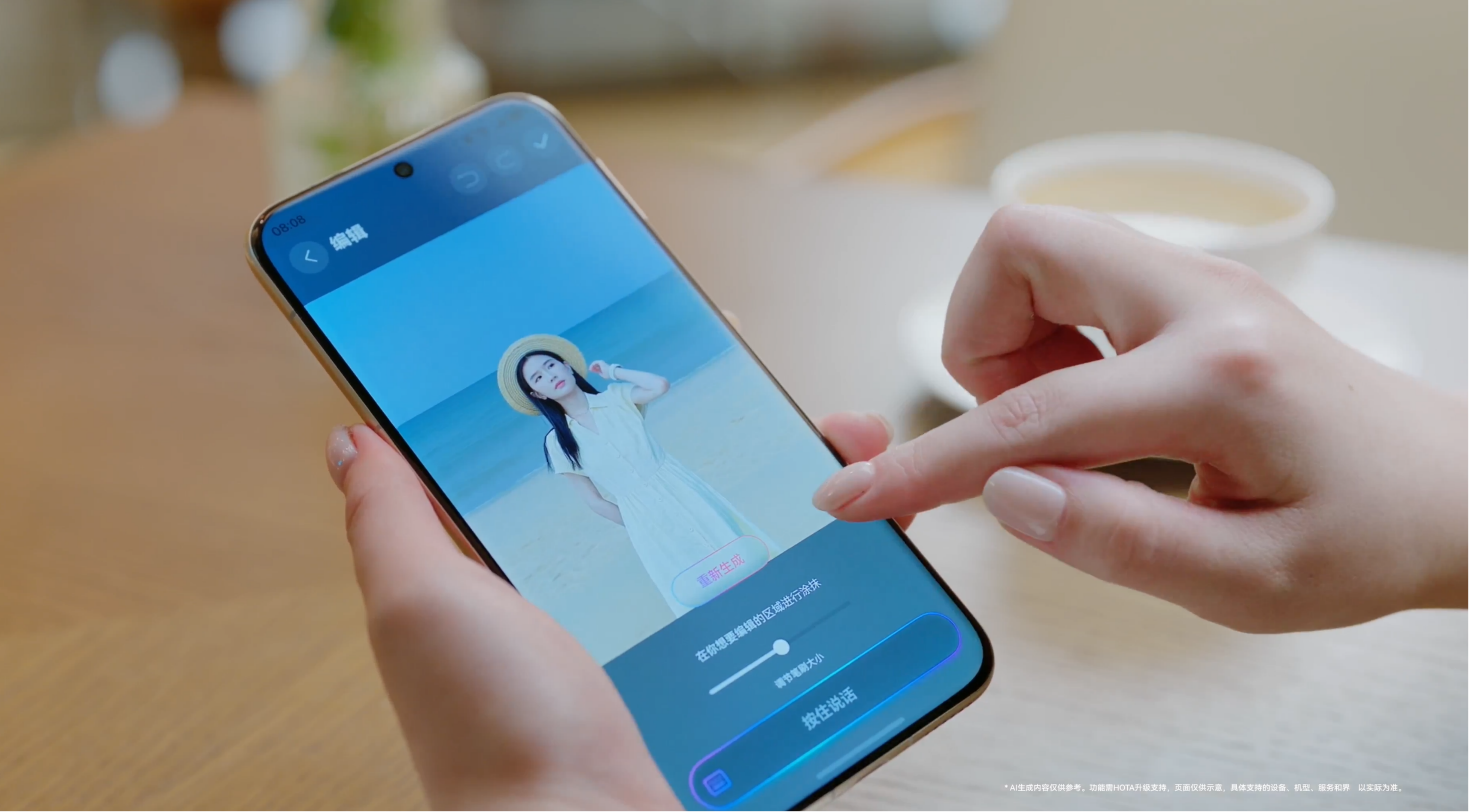 还有小艺的一句话修图也特好用。旅行拍了张照片,背景有路人,可以直接说“小艺,把这张照片里的路人去掉,天空调蓝点”,再也不用自己研究修图软件了,一句话就搞定。