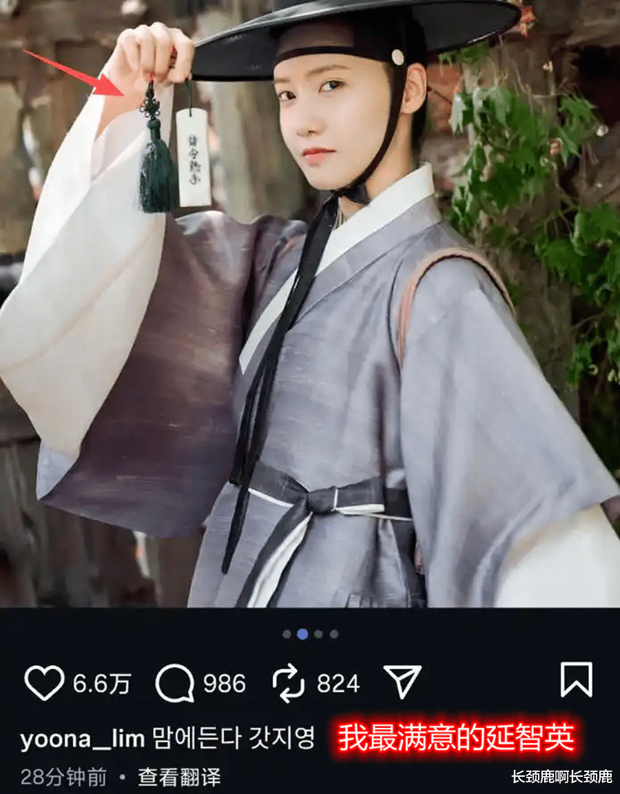 不仅如此,连林允儿特意发布的两张剧照,一个展示的是中文所写的“待令熟手”,一个展示的是中国结的配饰。