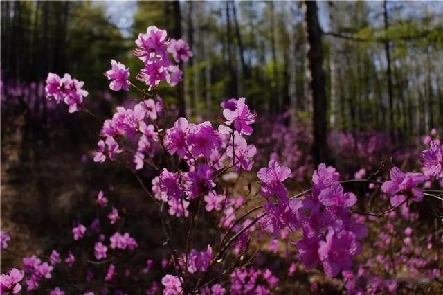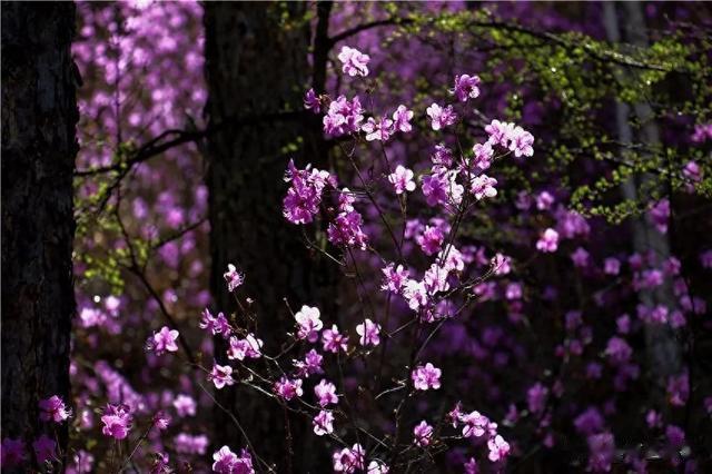 盛花期是图里河最盛大的狂欢。从河岸到山坡,千朵万朵花忽然一起绽放。那不是单薄的紫,而是揉碎了朝霞的粉,偶尔掺着几朵白,在风里酿成一片流动的虹。俯身闻时,清甜里带着些苦意。蜜蜂的翅膀掠过花间,转眼就飞向山外的远方。