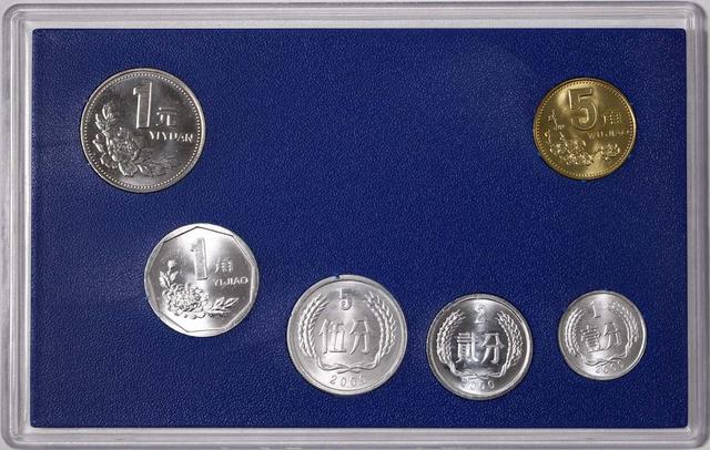2000年,新的菊花1元已经投入流通,牡丹1元原本是停止铸造了。不过为了配合同年梅花5角,装帧发行最后的中国硬币册子,还是铸造了32万枚。