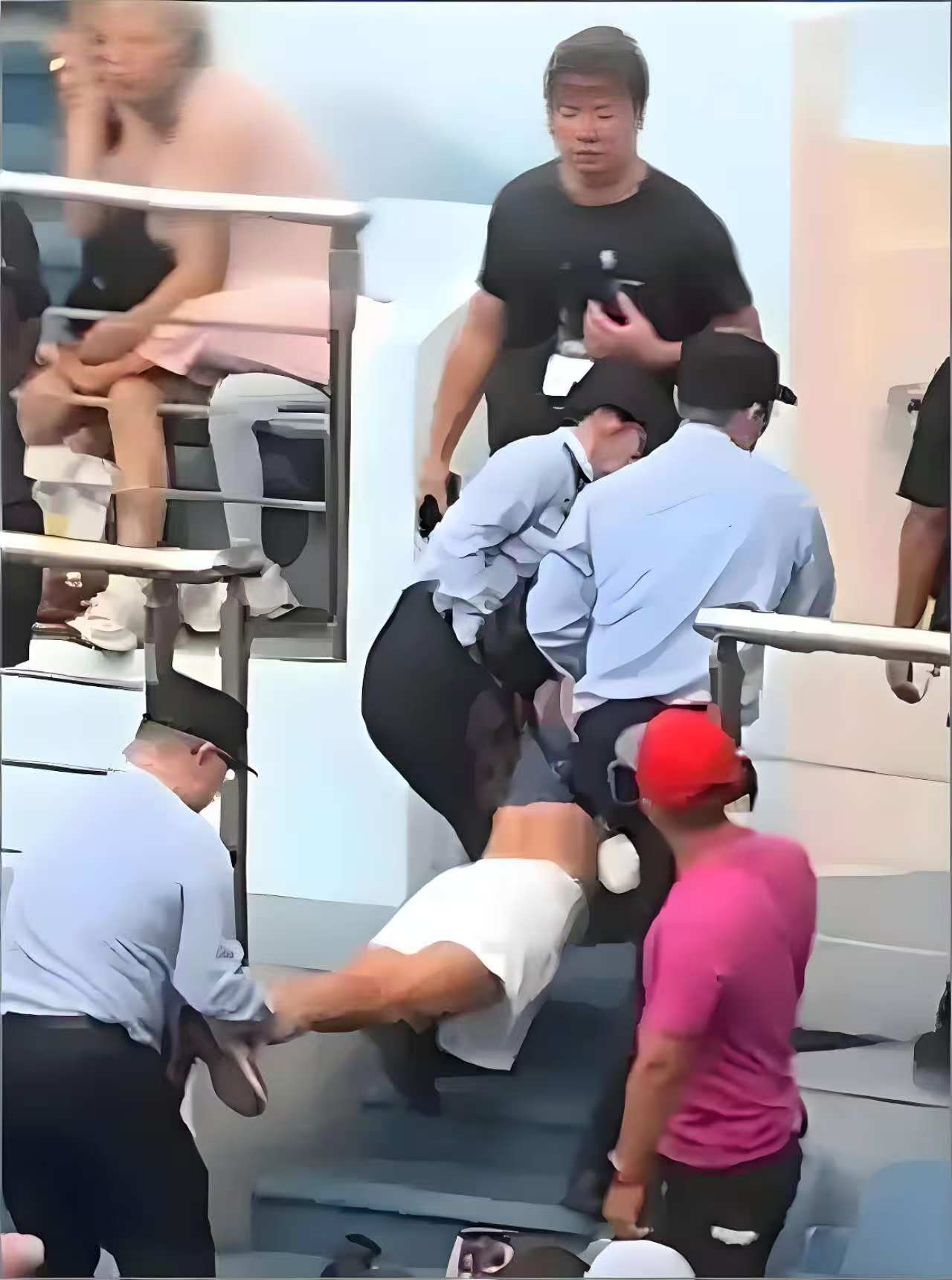 10月1日下午,上海旗忠网球中心正在进行ATP1000大师赛的男单对决,意大利球员贝雷蒂尼与法国球员马纳里诺的较量吸引数千观众。然而,一场突兀的插曲打破了赛场专注的氛围:一名46岁女球迷谢某某在饮酒后情绪失控,在看台持续尖叫喧哗,甚至向安保人员挥舞证件挑衅。主裁判多次劝阻无果后,被迫暂停比赛。现场视频显示,谢某某被抬离时仍不断挣扎尖叫,同行的小男孩试图劝阻却未能平息她的失控。