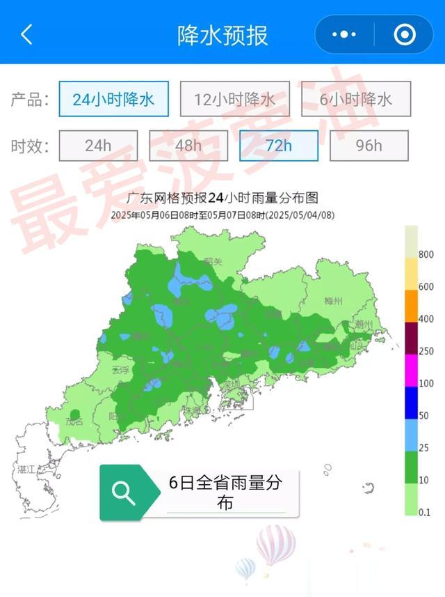 6日,珠江三角洲西部、阳江有中到大雨局部暴雨