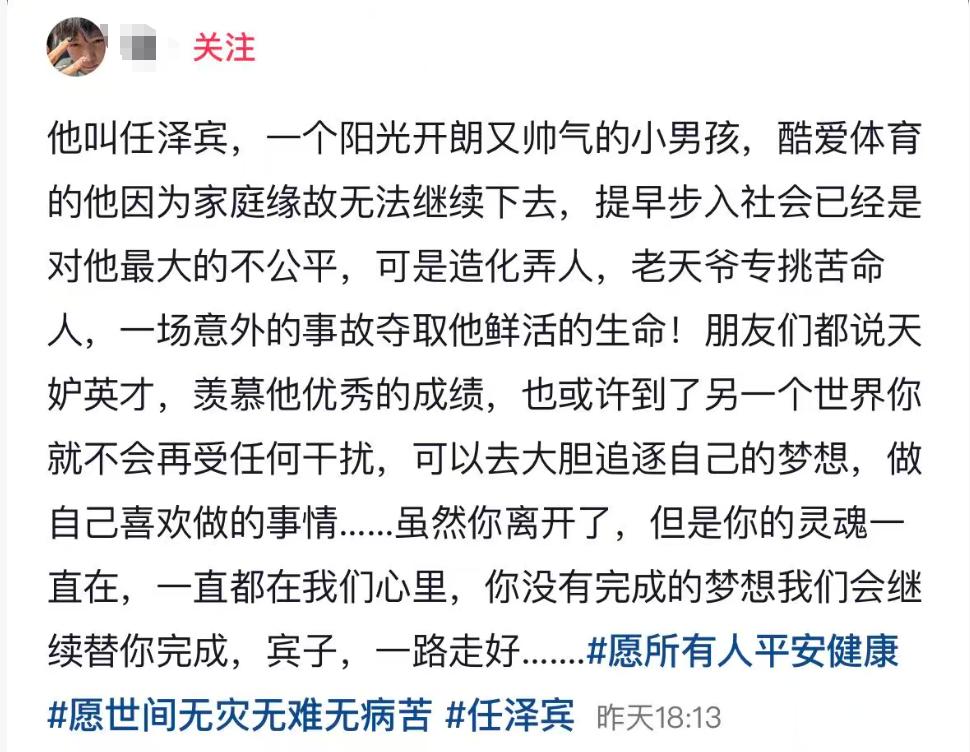 猝然离世19岁,本该是肆意张扬、追逐热爱的年纪,任泽宾却没能拥有这样的青春。