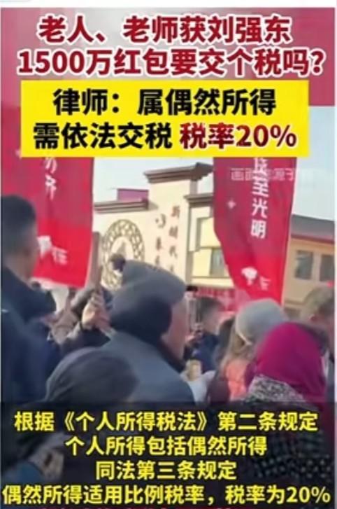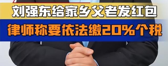 国家双千计划法学专家陈平凡一针见血地指出,这种临时性的现金赠与,打个比方说就跟中彩票差不多,属于偶然所得,该交的税一分都跑不了。说白了,这事得这么理解:刘强东是自掏腰包给乡亲们发红包,不是京东公司在做活动。这一点得划清界限,因为关系到后面怎么交税。按现行税法规定,这种收入得按20%的比例交税。打个简单的比方,收到一万块,就得留出两千块给税务局。