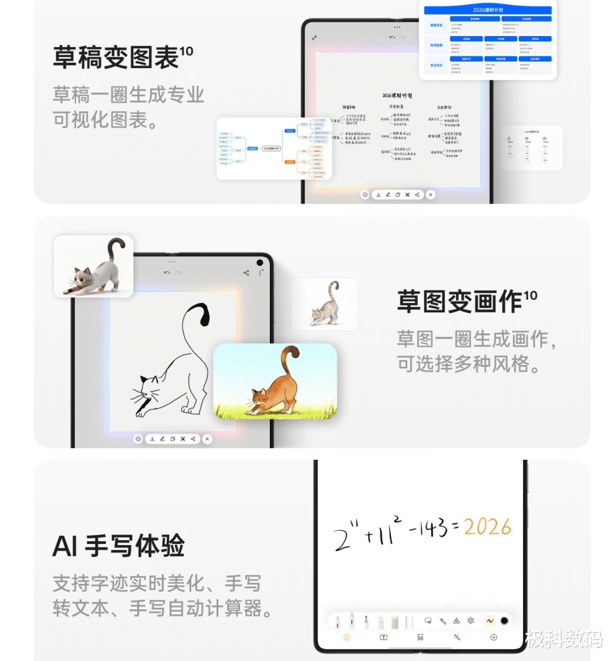 另外的一大亮点是它的AI手写笔。不是简单地当触控笔用,而是有“一圈一点”的AI能力。随手画个草稿,圈一下就能生成专业图表;随手写几个字,圈一下就能生成精美画作。开会时老板说“你画个流程图看看”,以前得说“等一下我开电脑”,现在直接在手机上画圈,AI帮你生成。这种“灵感秒变作品”的体验,对于经常需要沟通创意的职场人来说,确实能提升效率。