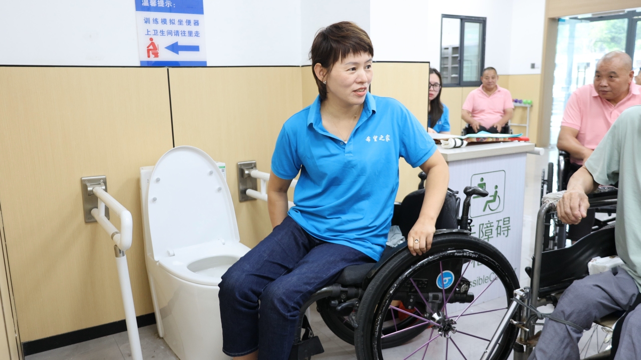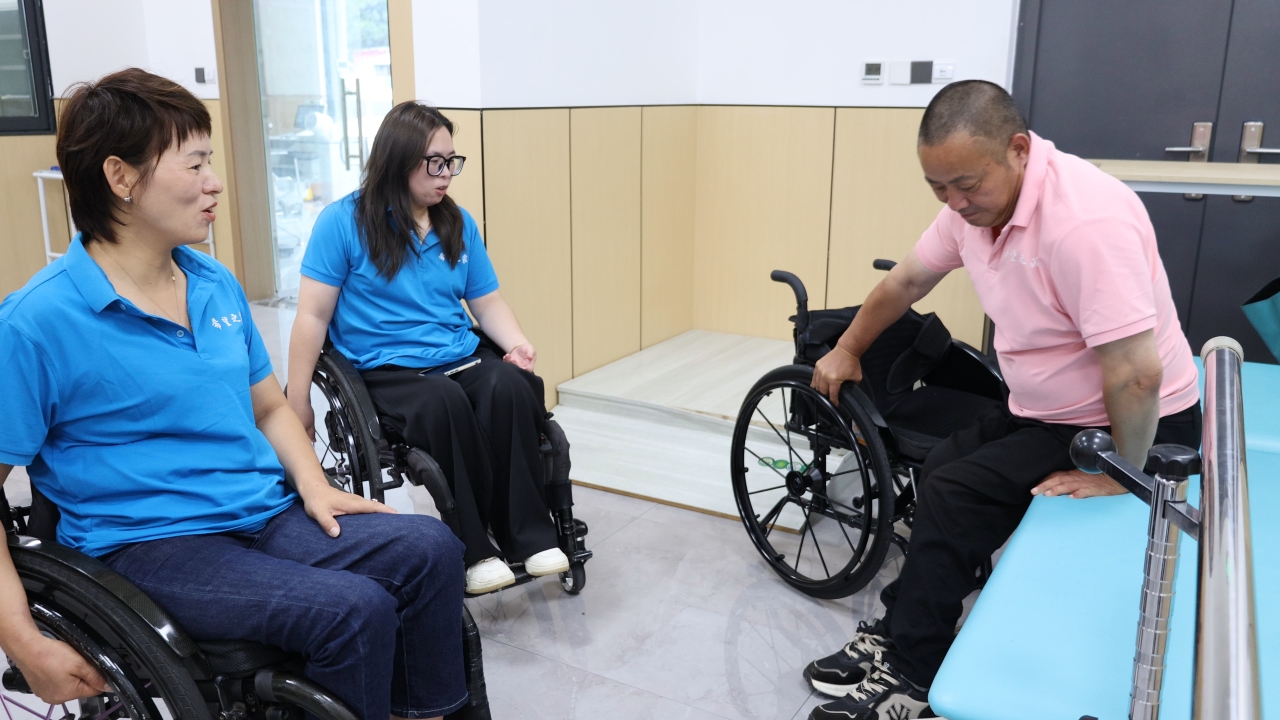 上午,在熟溪街道溪南社区活动室里,周小红正在为伤友们演示轮椅到床、坐便器转移、轮椅爬坡等生活技巧。她是武义县“希望之家”生活重建训练营的负责人。今天,由她发起的自助互助康复培训班第六期正式开班,在为期13天的课程里,伤友们将在她的带领下学习辅具使用技巧、社会适应能力等多维度的课程。“看到学员们一天天进步,其实也有一份感动,看到他们生活越来越好,自己感觉自己也是挺有价值的。”周小红说。