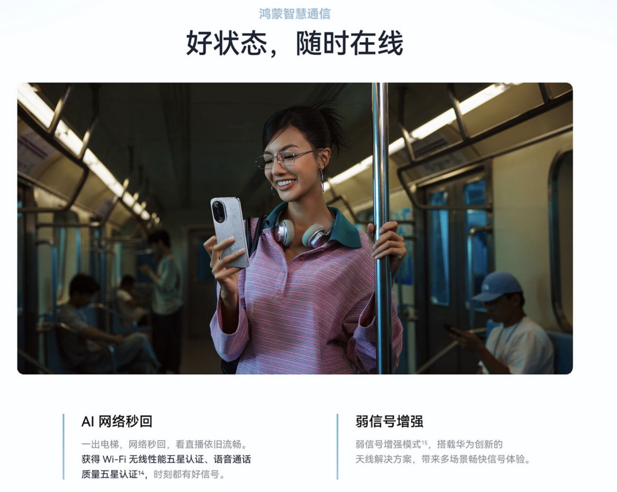 你是否也经历过这样的绝望瞬间:在地下车库扫码支付,信号圈转个不停;在高铁上想看会儿视频,却一直在缓冲;和朋友开黑打游戏,关键团战时刻网络延迟爆表。这种“信号焦虑”十分令人尴尬。华为nova 14 活力版搭载的鸿蒙智慧通信,支持AI弱网秒回和弱信号增强技术,在电梯、地铁这类信号不稳定的地方,它能智能预测并快速切换到更优的网络,让你的通话和上网体验始终流畅。即使在信号微弱的角落,它也能尽力为你保持连接,让你在关键时刻不断联,安全感满满。