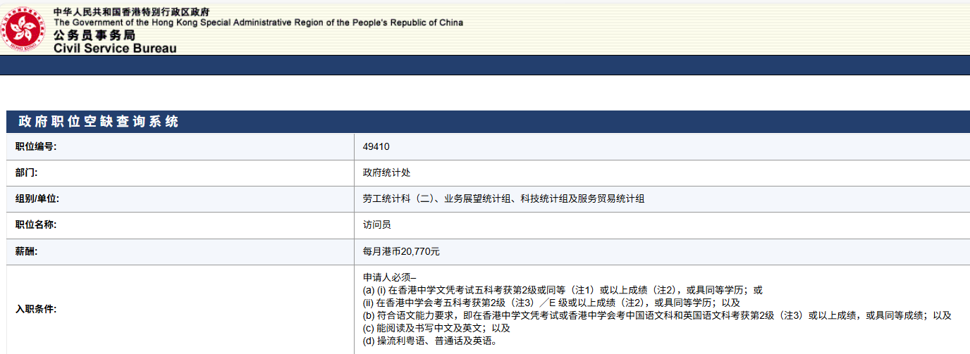 招聘详情可点击链接查看公务员事务局-招聘事宜:https://www.csb.gov.hk/tc_chi/recruit/7.html