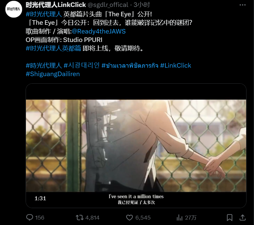 在与粉丝深度互动,提升了IP影响力和商业潜力。B站同时借鉴日本与欧美经验,强化IP生态建设,向游戏、影视、周边等领域拓展,挖掘IP的长尾价值。在X、INS等平台上,《时光代理人》《天官赐福》等动画二创源源不断,证明了优秀的国产动画作品在海外也有自来水。