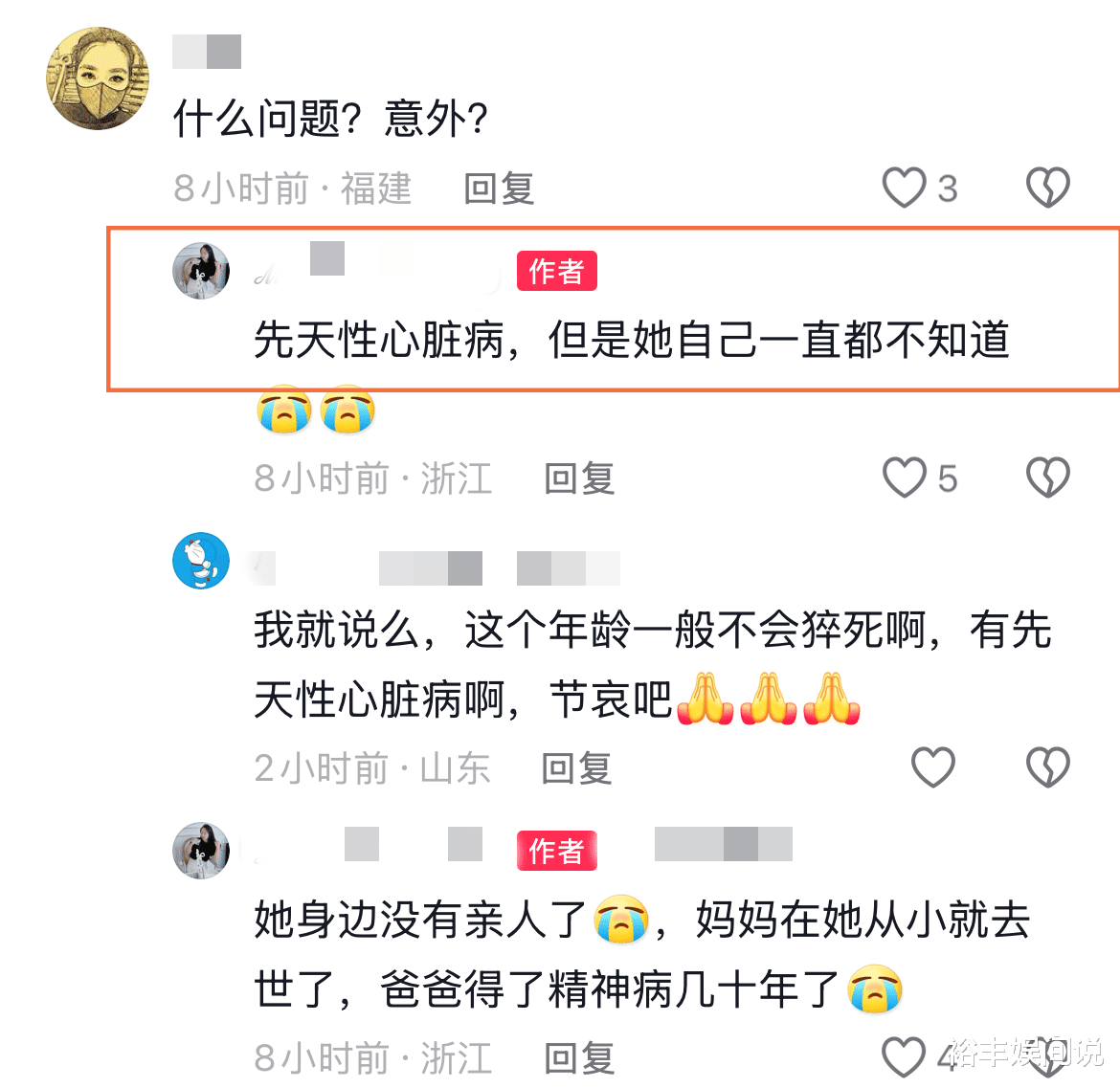 因为一直不知道自己患有这种疾病,且爷爷奶奶也从没有告诉过她,再加上不体检,由此导致了这一噩耗,想想真的让人无法接受。