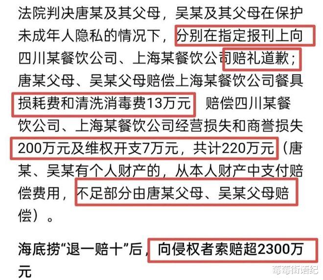 一锅沸腾的红汤,两个17岁少年的荒唐行为,让海底捞一度被推上风口浪尖。如今,这场持续半年的风波终于迎来法律层面的结局——220万赔偿、公开登报道歉,一纸判决书写下的不仅是赔偿金额,更是一道清晰的法治红线。
