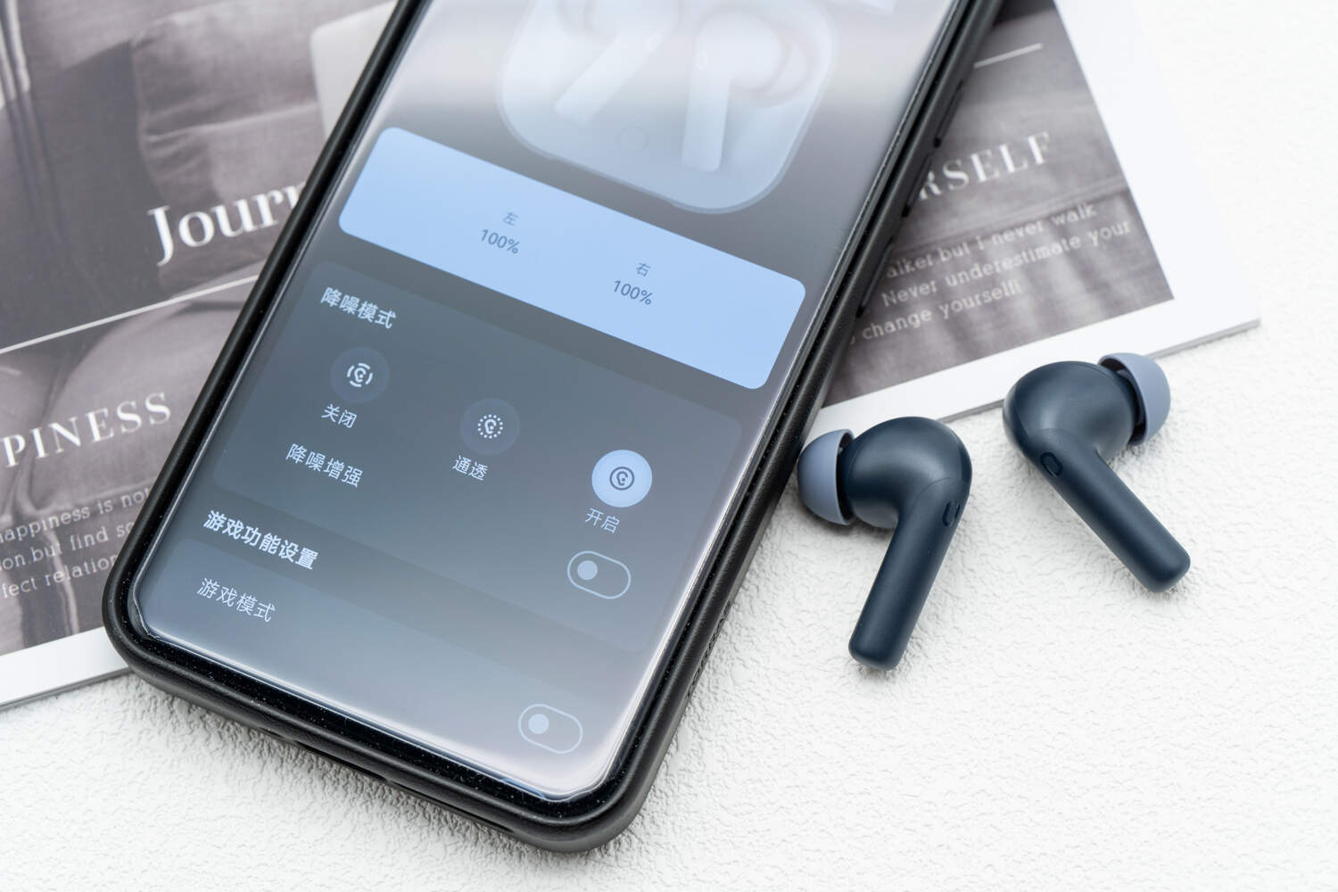 在日常使用中,我是保持LHDC连接原点来听歌和日常使用的;因为几乎不玩游戏,因此还是以音质为优先保障对象。但作为真无线蓝牙耳机,其首先得是搭配手机的音频工具而非音乐欣赏工具。加上原点并不是以音质为主打卖点的产品,因此这次我就先从功能层面来聊起。原点作为一款200元不到的TWS耳机,其给我留下的第一印象就是降噪深度惊人;也正因此我开玩笑地给它起了个“Airpods Pro平替”的称号。在我听过的500元内的TWS(包括一些手机厂出的耳机产品)中,原点的降噪效果稳居第一梯队。原点的降噪开启后有三档可调,分别是“开启降噪”、“降噪增强”和“实验性降噪算法”三档,效果逐级提升。虽然正式量产版在同时开启后两者后耳压依然明显且对音质有负面影响,但在一些特别嘈杂的环境下,你又不得不使用耳机的时候,还是相当有效的。而正常情况下,如果你不是处于乘坐飞机和地铁等本身运行噪音很大的环境,那么仅“开启降噪”其实已经很够用了。用户根据自身的降噪需求可在三档降噪之间自行切换。