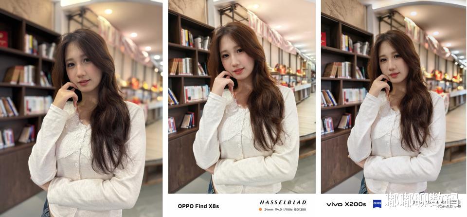 在影像功能方面,vivo X200s配备了提升画质的V2影像芯片和蔡司镀膜技术,OPPO Find X8s的LUMO凝光影像系统,可以保留皮肤质感的同时优化气色,哈苏大师模式则可呈现出富士胶片风格的质感照片,参考下面这组人像样张,可以看到两款手机的成像画质都相当出色,其中,vivo X200s的画风更浓郁,OPPO Find X8s呈现的人物面部肤色则更有气血感。