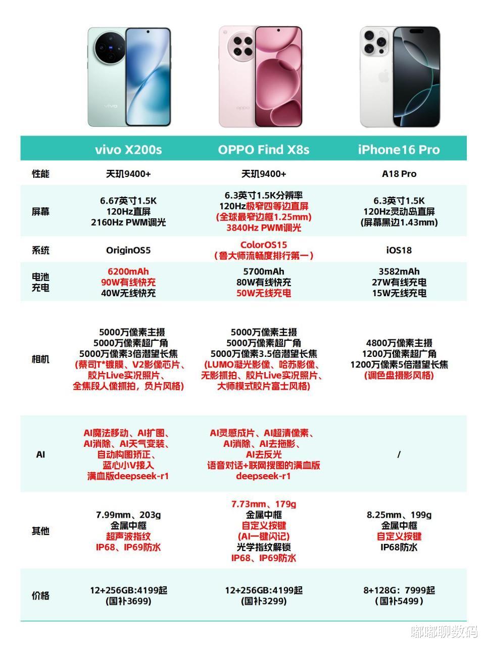 因此,对于准大学生而言,尽管降价后的iPhone 16 Pro很有吸引力,但256G版价格依然偏贵,而OPPO Find X8s和vivo X200s这两款国产旗舰,不仅标配256G大存储,在外观、影像及续航方面也表现更出色,特别是系统和AI都针对国内用户需求进行了优化。喜欢大屏幕与长续航的可以选择vivo X200s;追求小巧机身且全能体验的同学,则可考虑OPPO Find X8s,国补后到手价仅需3299元,性价比十分突出。