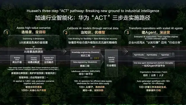 在此背景下,华为提出的“ACT三步走”方法论,正为企业提供一套系统性的实践框架,助力实现从技术应用向高效价值创造的实质性跨越。该框架不仅精准回应了当前范式转换的迫切需求,更明确指出一条可落地、可操作的实施路径。因此,那些能够率先理解并践行这一新模式的企业,将在智能化浪潮中构筑起持续而坚实的核心竞争力。