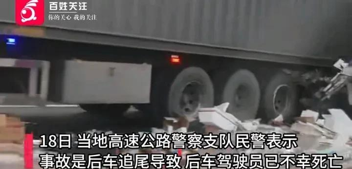 对于人员伤亡情况,当地高速公路警察支队民警表示,此次事故是后车追尾导致,后车驾驶员已不幸死亡。
