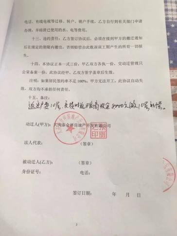 2015 年,杜尔伯特蒙古族自治县住房与城乡建设局与杜尔伯特泰合祥房地产开发公司签订了《预合作开发协议》,明确将原房产三号楼所在区域纳入棚户区改造范围。对于居民们来说,这一消息起初伴随着疑惑与期待 —— 这栋建成仅 15 年的楼房,配套齐全、居住舒适,实在难以与 “棚户区” 划上等号。但看着盖有政府部门相关印章的文件,想着是政府主导的城市发展项目,能改善居住环境,大家渐渐放下了疑虑。2017 年 7 月,在泰合祥公司工作人员的沟通协调下,13 户居民先后与该公司签订了《动迁协议书》,协议中明确约定 2018 年 8 月将按照原址迁回,同时给付一年的租房补贴款与搬迁费。彼时,不仅居民们积极响应,就连住建局产权的三个商服门市也先于居民完成了搬迁,大家都满心欢喜地等待着新房落成的那一天。