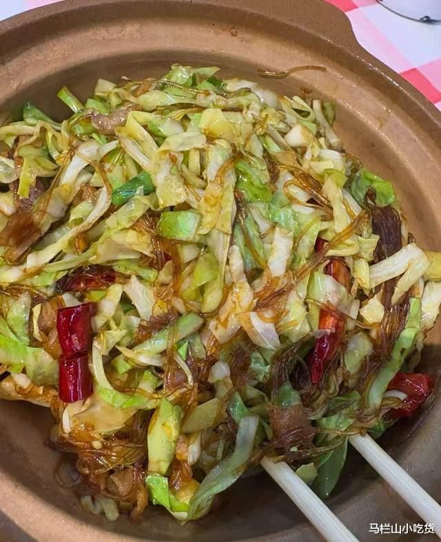 砂锅包菜粉丝:自带锅气的菜,甜脆的包菜和细滑的粉丝一起,直接在加热的砂锅里烹饪,是很多人喜欢的菜。