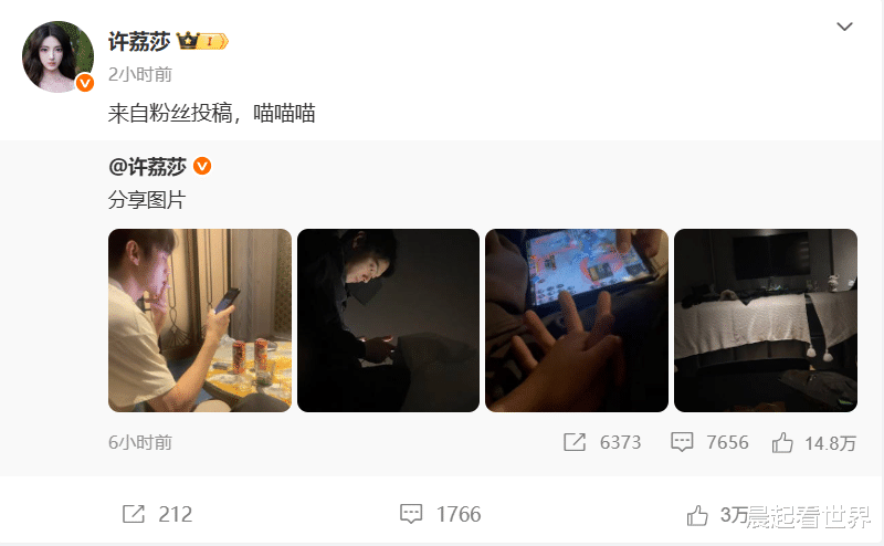 许荔莎不仅发布了文字爆料,还晒出了一组照片作为证据,包括许凯一边吸烟一边耍手机的照片、黑灯瞎火玩游戏的照片,以及一边打游戏一边拉着手的照片。