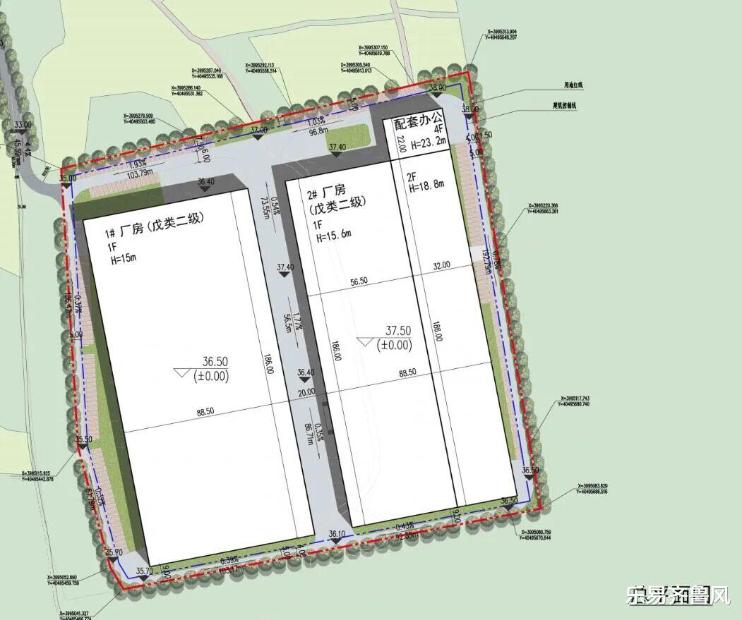 项目用地面积52164㎡,总建筑面积41743.02 ㎡,其中生产部分建筑面积40028.27㎡,包括戊类二级两栋1层和2层厂房,配套4层办公部分建筑面积1714.75㎡,建筑密度75.89%,绿地率7.65%,建筑占地面积39585.62㎡,容积率为1.56,机动车停车位179个(以实际审批结果为准)。