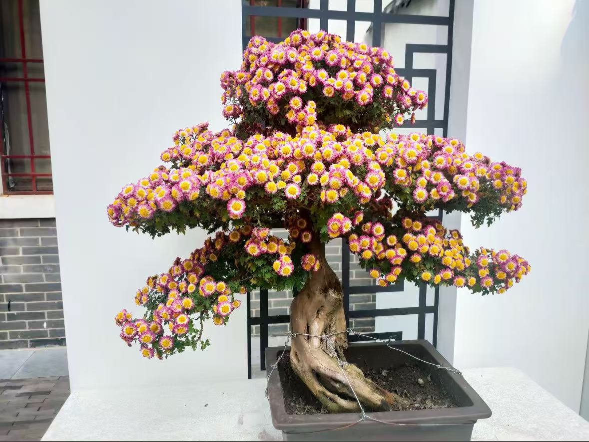今年有新花样,以“菊脉”为主题用菊株拼出黄河水纹以及殷墟甲骨文中“秋”字的图腾,让植物生长脉络和文明基因相互呼应共鸣,赏菊实则是在辨认一种古老坚韧的生存美学;别的东西都默默隐去,只有它以最繁复的姿态将凋零化作高潮。