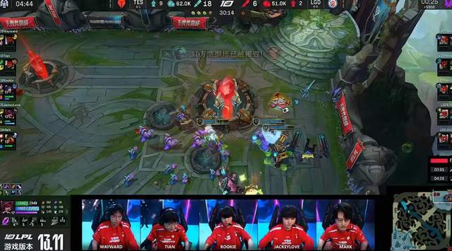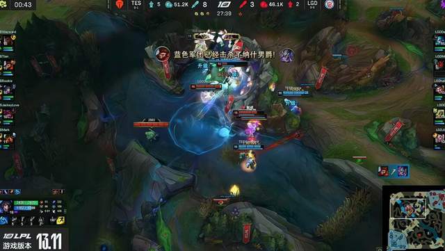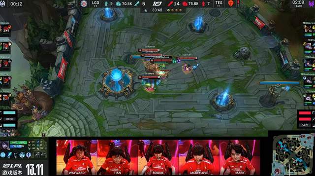 在38分钟时,TES顺利拿下大龙,而LGD选择偷水晶计划,直冲基地。
