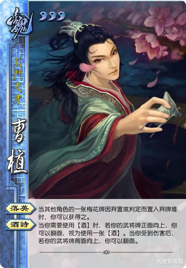 【酒诗】能喝酒,代价是会翻面,需要和队友打配合。曹植是早期游戏内的大热门武将,就因为长得帅、【落英】还能捡一大把牌,耐玩且好玩!