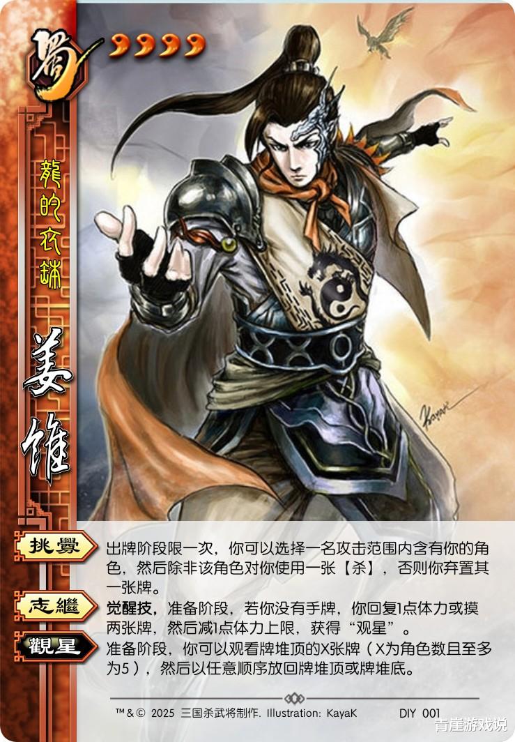 龙的衣钵——姜维姜维是早期游戏内的颜值巅峰,【挑衅】选择的角色必须对你出杀,否则会被弃牌。姜维的拆牌收益很高,面对残血的敌人,往往只能被拆牌了。当没有手牌时,还会觉醒【志继】,获得【观星】。