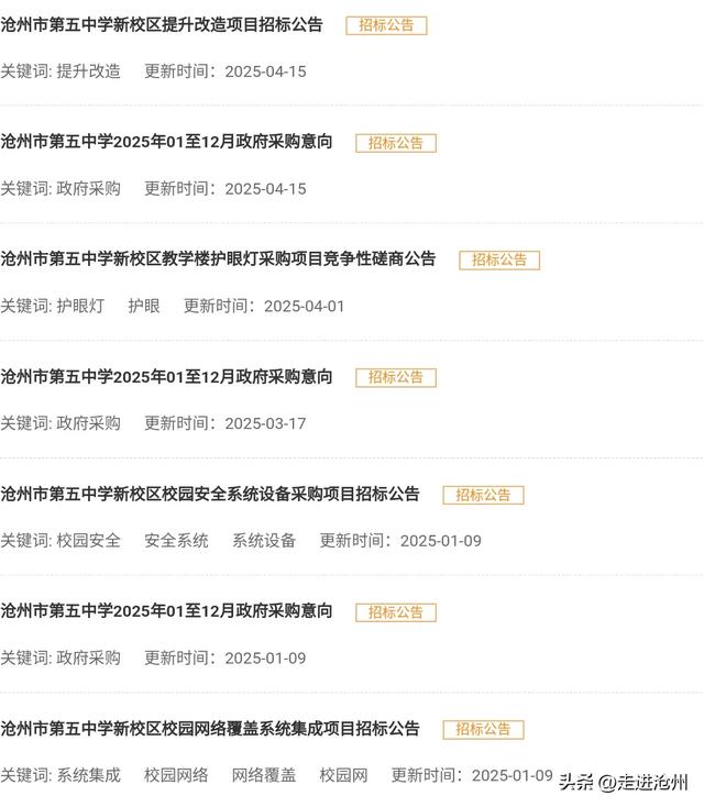 搜索后发现五中今年在招标平台发布了多次采购需求,多数为针对新校区建设