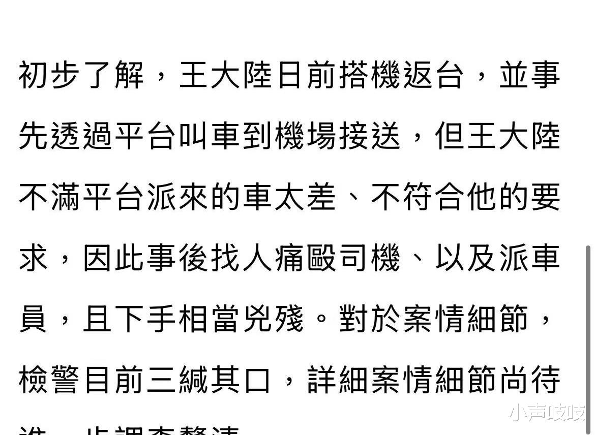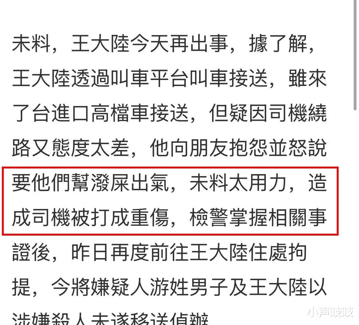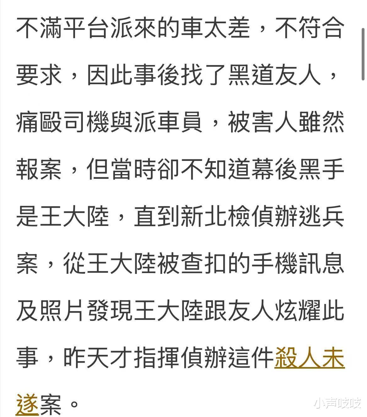 逃兵役的行为本身已经让人不齿,而“杀人未遂”的指控更是让事情雪上加霜。从最初的吐槽叫车平台服务,到朋友安排黑道围殴司机,再到拍摄伤者照片炫耀,王大陆一步步把自己推向深渊。虽然目前案件仍在侦办中,但舆论的热度早已达到沸点。