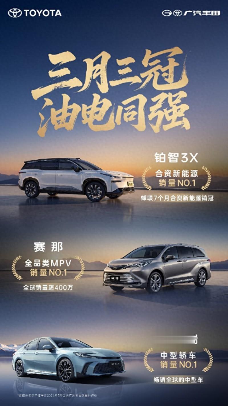 2026年3月汽车销量榜单新鲜出炉,在新能源与燃油车双线竞争愈发激烈的当下,广汽丰田旗下铂智3X、赛那、凯美瑞三款车型表现稳健,分别登顶合资新能源、全品类MPV、中型轿车细分市场销量榜首,用实打实的销量,展现了其强劲的综合竞争力,也为打算购车的消费者提供了可靠的参考。