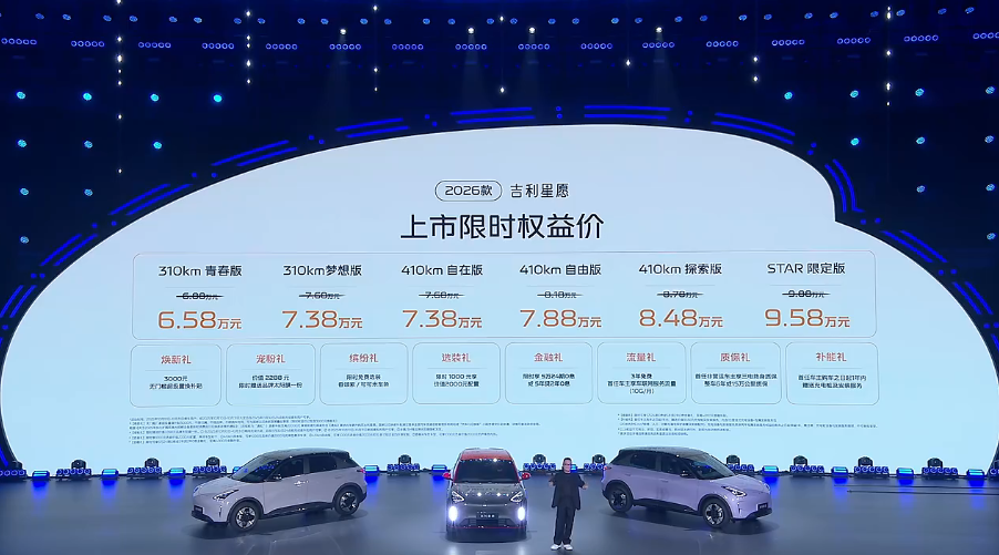 在竞争日趋白热化的纯电小车市场,一款产品若想持续引领风潮,必须经历由内而外的全面进化。2026款吉利星愿的正式上市,便是一次对“爆款”定义的深度诠释。它以限时6.58万起的亲民姿态,带来了涵盖三电、智能、安全、空间及驾控等维度的跨越式升级,彰显出终结“小时代”的硬核实力。