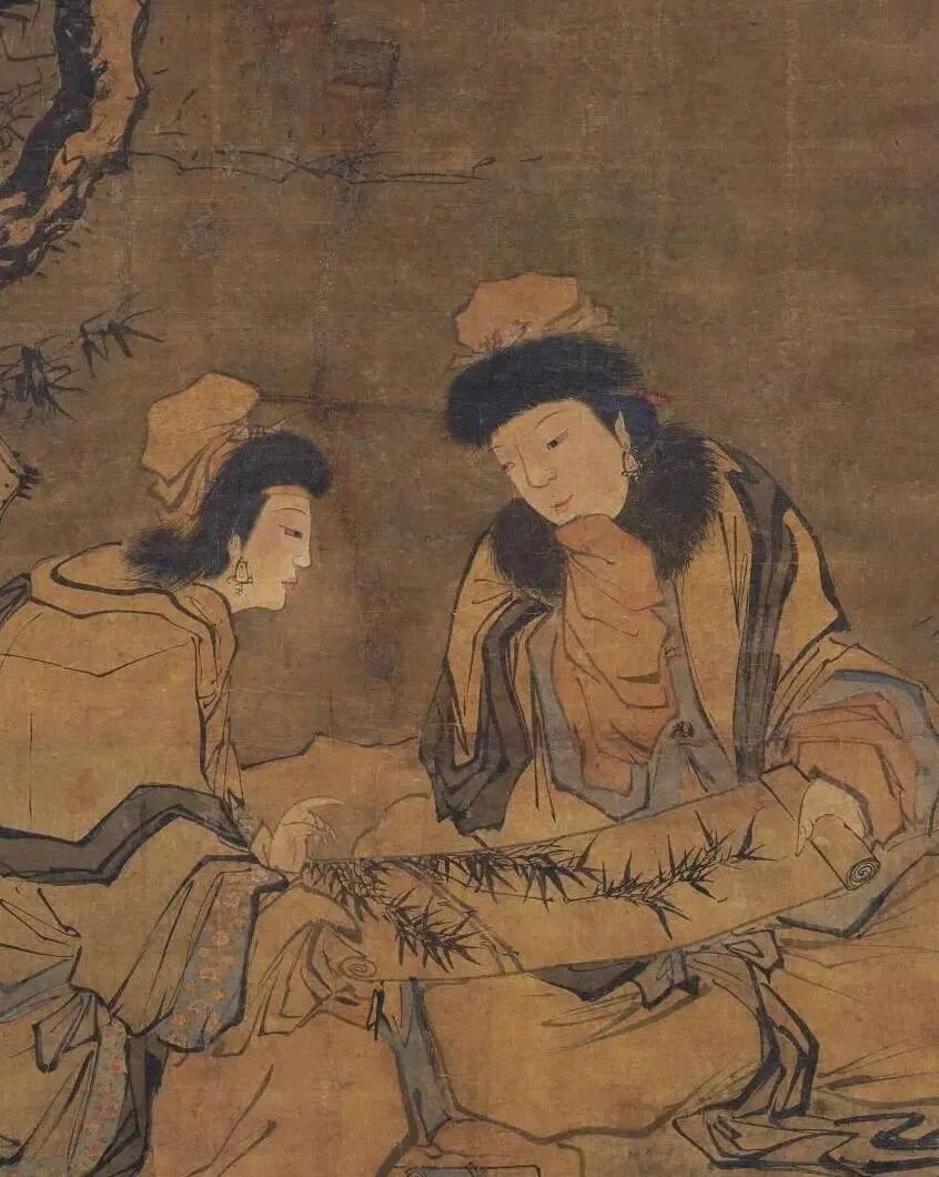 在古画中我们可以看到女性的围脖,是实打实的动物皮毛,这在古代也是只有贵族家庭才能穿得起,看起来温暖十足,从古画中就可以感受到它油光水滑的质感,如果要是亲眼所见肯定更非同凡响。