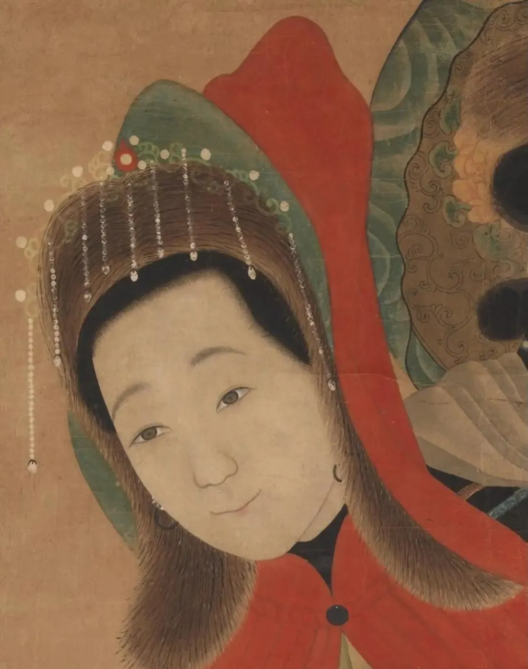 还有清朝的《仕女四条屏》里的女性穿着皮草比甲,随意的搭在自己的身上,围脖常见,袖口和领口有皮草也常见,可这样的比甲不常见,将贵妇的形态展现的淋漓尽致,贵族从来过得都不差,也饿不着冻不着。更别说服饰还是里三层外三层,这件皮草不知道要祸害多少小动物才能拥有这么大一件,古代的富是真的富,穷也是真的穷。