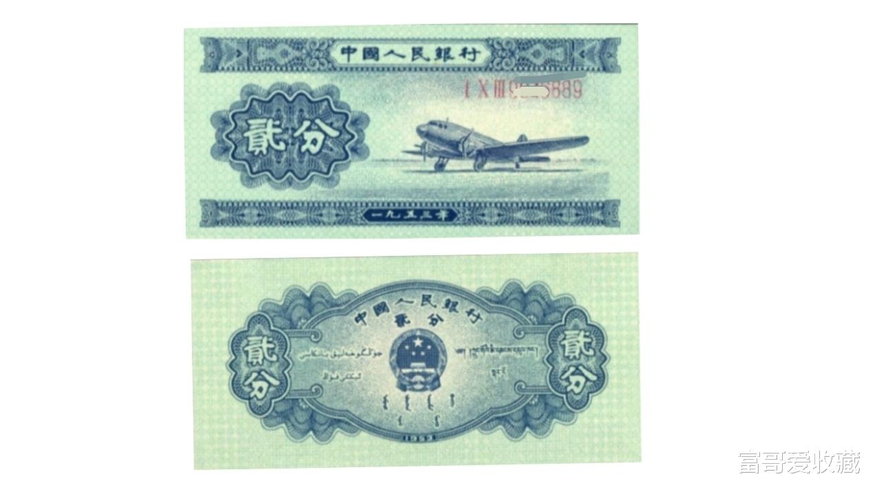 以前的“2分纸币”,现在市面上已经很少见到了,其中纸币的正面,左侧为“贰分”字样,右侧为“飞机”图案。