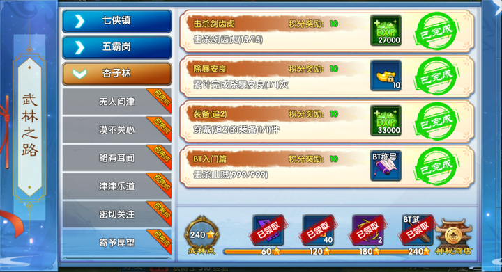 2. 17级后:武林之路任务指引