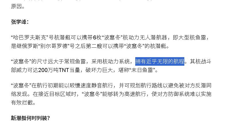 这款被称为 “末日鱼雷” 的杀器,搭载百万吨级核弹头,威力远超 “萨尔马特” 洲际导弹,单枚就能摧毁整个航母战斗群,甚至引发海啸淹没沿海城市。